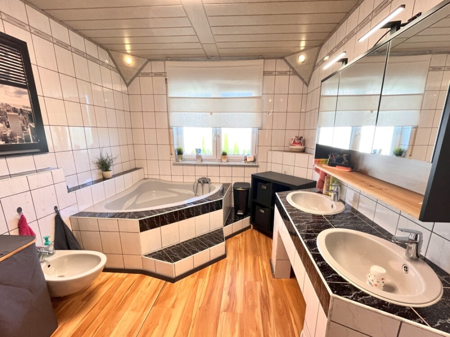 Im Obergeschoss befinden sich drei Schlafzimmer, ein Bad mit Eckbadewanne und eine praktische Ankleide.