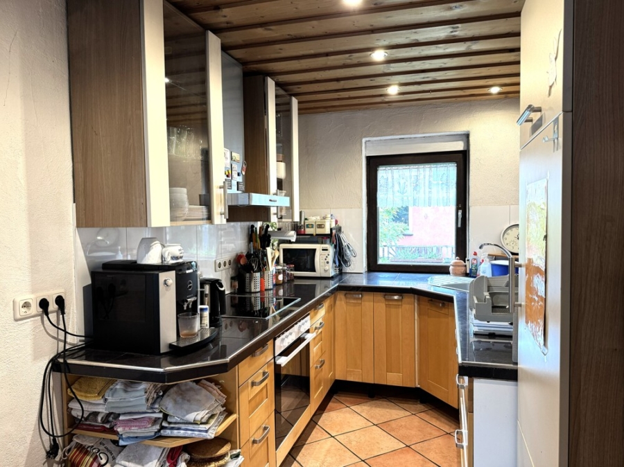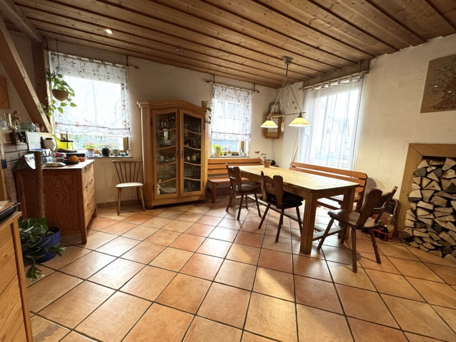 Empfangen von einem Eingangsbereich gelangen Sie in das Herzstück des Erdgeschosses, dem Wohn- Essbereich mit einem Kaminofen, der für wohlige Wärme sorgt. Ein weiteres Highlight bietet die offene Küche, ein Zimmer, ein Gäste-WC und der Zugang auf die herrliche Terrasse. Hier lässt es sich hervorragend entspannen und lädt zu gemütlichen Grillabenden ein.