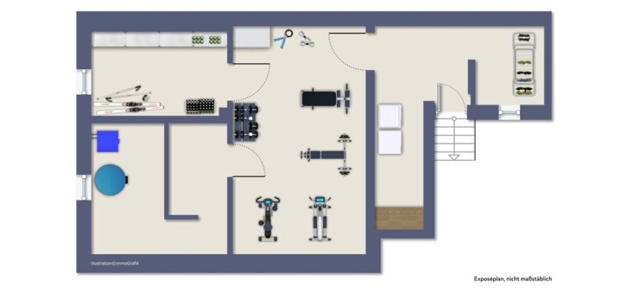 Oben befindet sich neben dem Schlafzimmer mit Ankleideraum ein Kinderzimmer. Home-Office: Hier können Sie einen Raum im Nebengebäude verwenden mit separatem Zugang. Praktisch: Das ganze Haus ist unterkellert, hier sind alle Nutzräume.