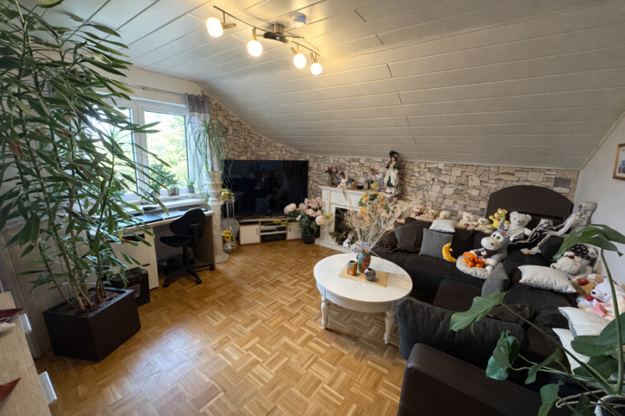 Im Erdgeschoss bildet das großzügige Wohnzimmer das Herzstück, ergänzt durch ein praktisches Gäste-WC. Die Küche ist ein besonderer Hingucker: Sie verfügt über einen eigenen Erker, der für viel Licht und eine gemütliche Atmosphäre beim Kochen sorgt. Das Dachgeschoss ist der private Rückzugsort mit drei gut geschnittenen Zimmern und einem Badezimmer.