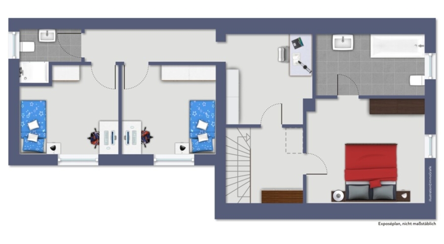 Jeder Raum ist hell, freundlich und flexibel nutzbar – ob als Kinderzimmer, Gästezimmer oder Homeoffice.