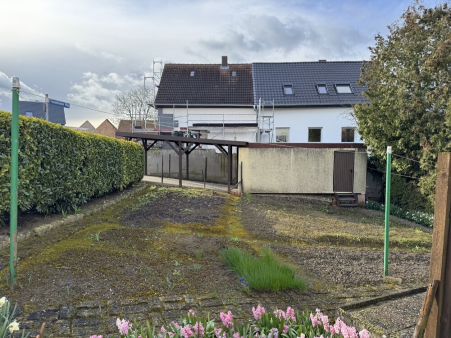 Zum Außenbereich gehören zwei Garagen sowie ein Carport, sodass ausreichend Stellfläche für Fahrzeuge vorhanden ist.