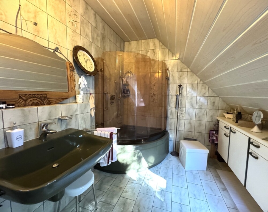 Im Obergeschoss befinden sich drei weitere Zimmer, eines davon mit kleiner Ankleide - auch hier ist ein Badezimmer mit Dusche. Der Keller ist durch einen separaten Zugang zu erreichen.