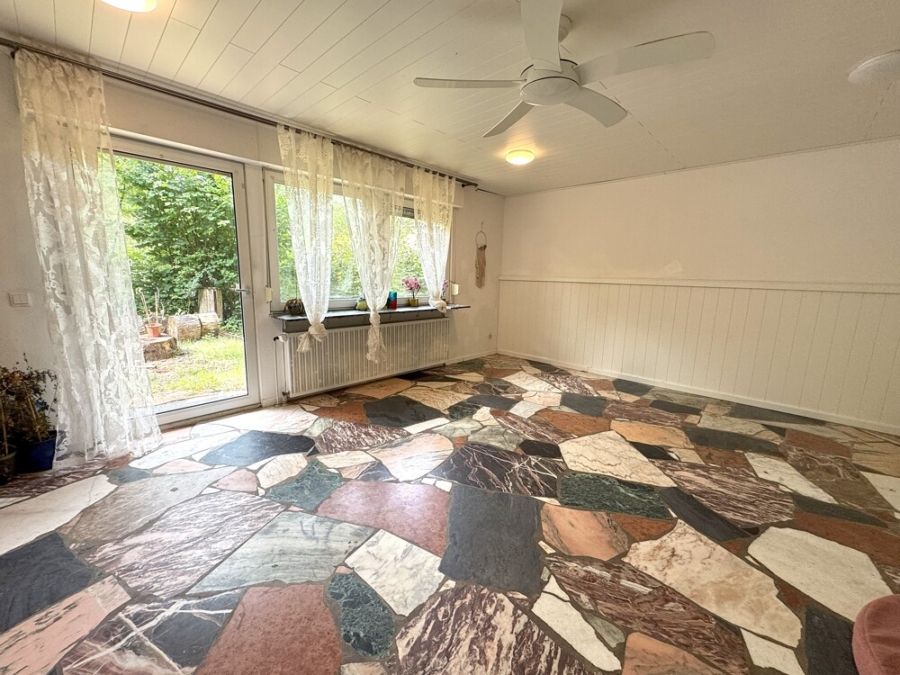 Auch das Untergeschoss bietet viel Platz zum Abstellen. Zwei Zimmer, die Abstellräume, ein Hauswirtschaftraum, eine Küche und ein Bad mit Dusche und WC runden das Angebot ab. Hier besteht die Möglichkeit die Räumlichkeiten als Einliegerwohnung zu nutzen.