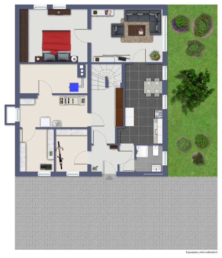 Der Garten bietet ausreichend Platz für die ganze Familie, sei es zum Spielen, Entspannen oder für gemütliche Grillabende mit Freunden. Die Gestaltungsmöglichkeiten sind vielfältig und lassen Raum für individuelle Ideen und Vorstellungen.