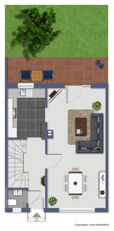 Durch die direkte Verbindung zum Garten erweitert sich Ihr Familienleben an warmen Sommertagen nach draußen - die Kinder spielen auf dem Rasen, während die Eltern auf der Terrasse entspannen oder mit Freunden grillen.