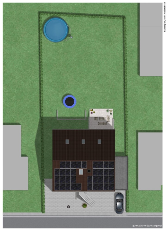 Der eigene Pool macht warme Tage zu kleinen Urlaubsmomenten, während der Gartenschuppen Platz für Geräte und Hobbys bietet.