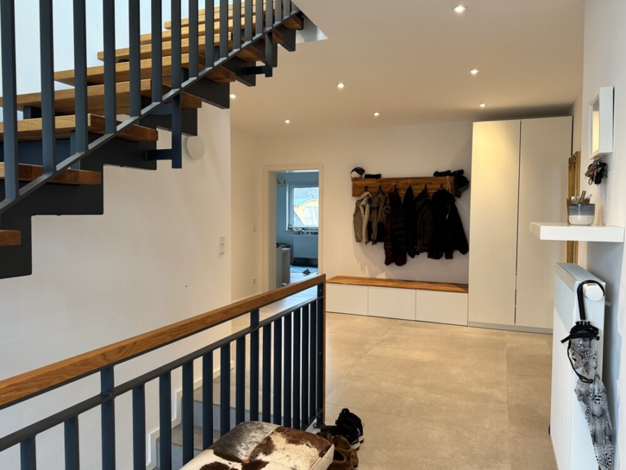 Eine Photovoltaikanlage mit Speicher, eine Wasserenthärtungsanlage, eine Garage sowie vier zusätzliche Stellplätze verbinden Nachhaltigkeit mit Wohnqualität, die man jeden Tag spürt.