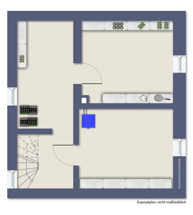 Das Haus ist komplett unterkellert, dieser bietet drei separate Räume.
