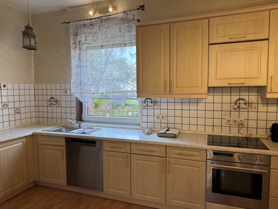 Im Erdgeschoss des gemütlichen Einfamilienhauses gelangen Sie über die geräumige Küche mit Blick in den Garten, in das Wohn- und Esszimmer welche räumlich voneinander getrennt sind.