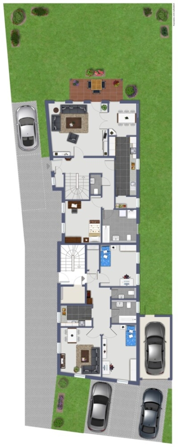 Das Gebäude umfasst vier Wohneinheiten, die sich auf drei Etagen verteilen und sich durch gelungene Grundrisse, praktische Raumaufteilungen und eine gute Vermietbarkeit auszeichnen.