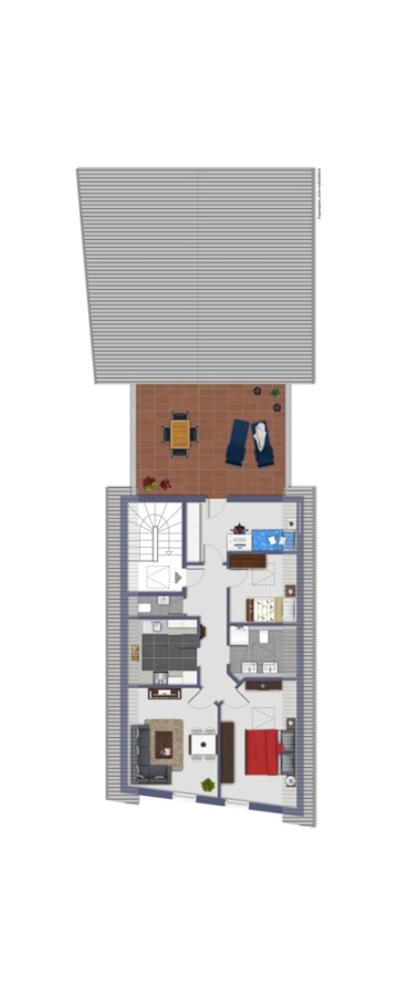 4 Zimmer, Küche, Bad, Gäste WC und eine große Dachterrasse. Ca. 75 m² Wohnfläche – für 660 Euro Nettokaltmiete vermietet.