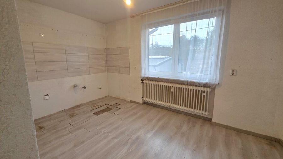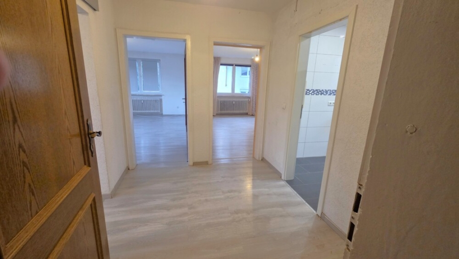 Im Erdgeschoß sind noch 2 Wohnungen zum Sanieren. Die Wohnung rechts ist schon entkernt und muss wieder neu aufgebaut werden. Die Wohnung links hat durch einen Leitungsschaden einen Wasserschaden erlitten und muss auch noch saniert werden.