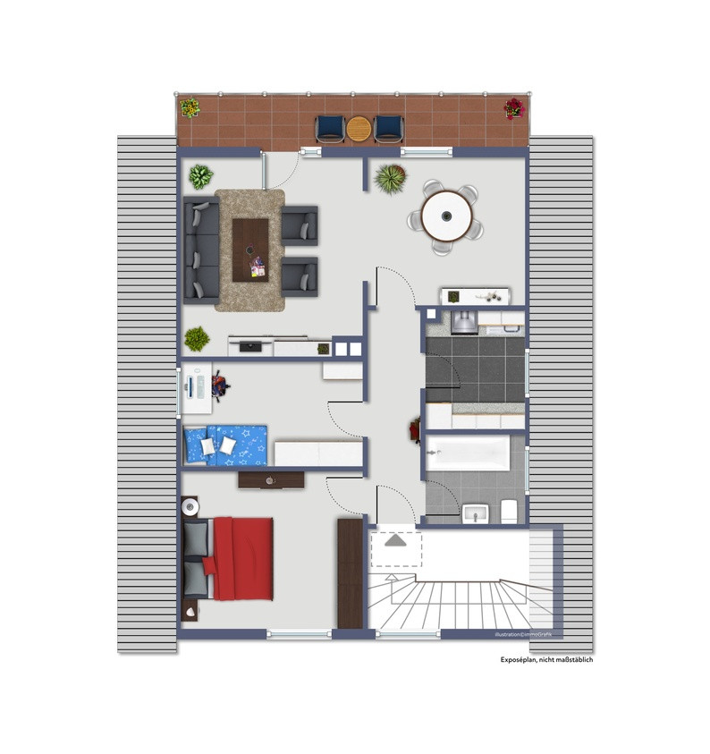 - Großzügige, schöne Balkone im Obergeschoss und Dachgeschoss