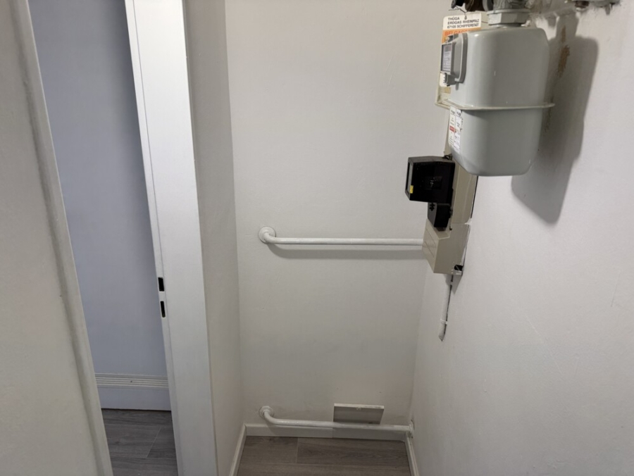 Das Duschbad und der Abstellraum sind vom Flur aus erreichbar - von hier aus führt die neue Wohnungstür in das Treppenhaus.