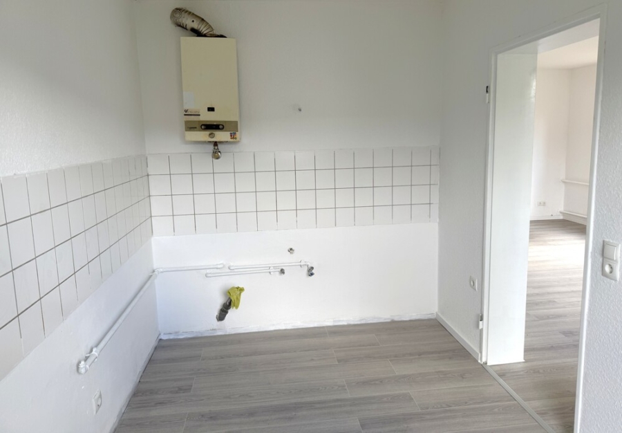 Das warme Wasser für Dusche und für die Küche wird in der Wohnung selbst mit einer Gas-Therme erzeugt.
