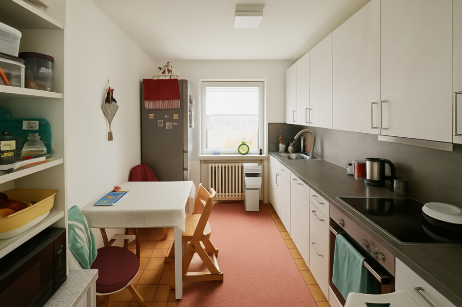 Zusätzlich stehen den Bewohnern ein Fahrradkeller, ein Waschraum sowie eine gemeinschaftliche Gartenfläche mit Sandkasten zur Verfügung. Die Hausgemeinschaft gilt als angenehm und eher jung, was für ein lebendiges und gepflegtes Umfeld sorgt. Für die Zukunft ist zudem die Sanierung der Tiefgarage mit elektrischem Tor und Öffner geplant.
