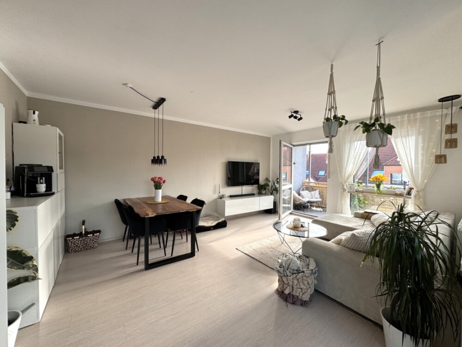 Bereits beim Betreten fällt der einladende Charakter der Wohnung auf. Der Wohnbereich ist modern und ansprechend gestaltet und bietet direkten Zugang zum Balkon, der den Wohnraum wunderbar ergänzt und zu entspannten Momenten im Freien einlädt.