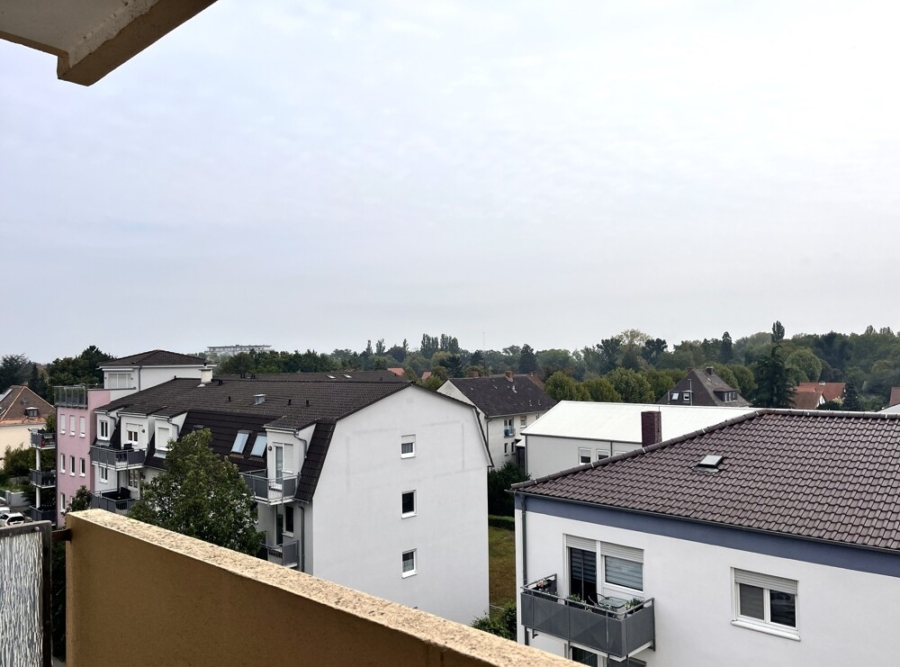 Aus dem Wohnbereich, aber auch aus dem Schlafzimmer und der Küche kommt man auf die beiden Balkone. Beide groß genug, um auch jeweils eine Sitzgruppe im Freien aufzustellen, beide mit einem fantastischen Blick über die Dächer Frankenthals.