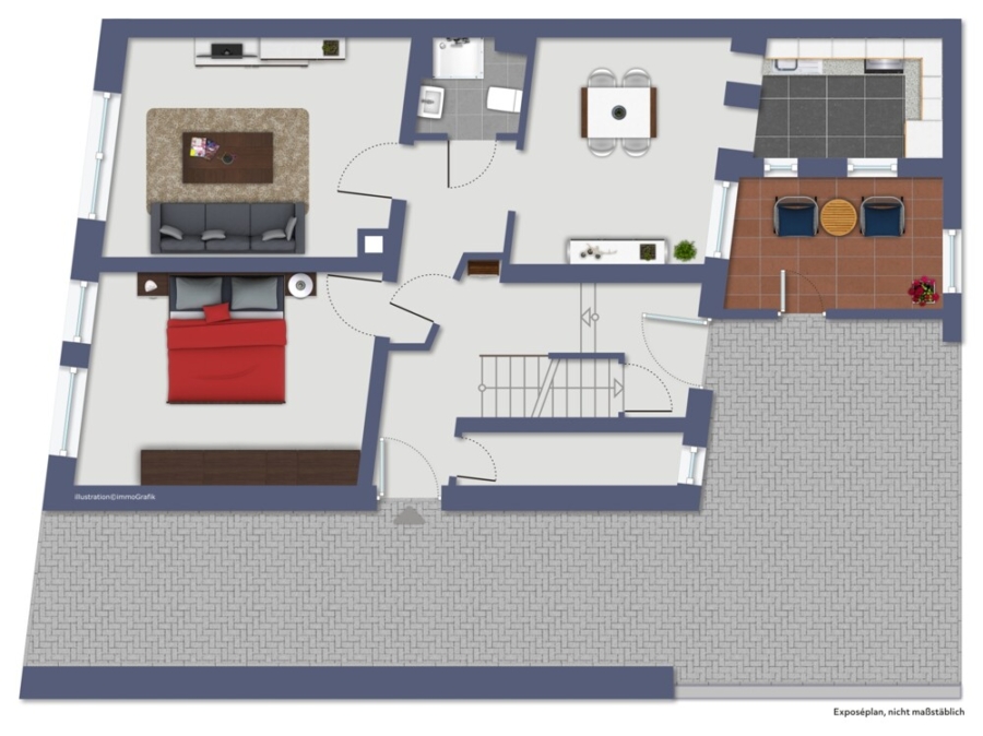 Diese Wohnung eignet sich ideal für unterschiedliche Lebenssituationen. Dank ihrer klaren Aufteilung und kurzen Wege entsteht ein funktionaler Wohnkomfort.